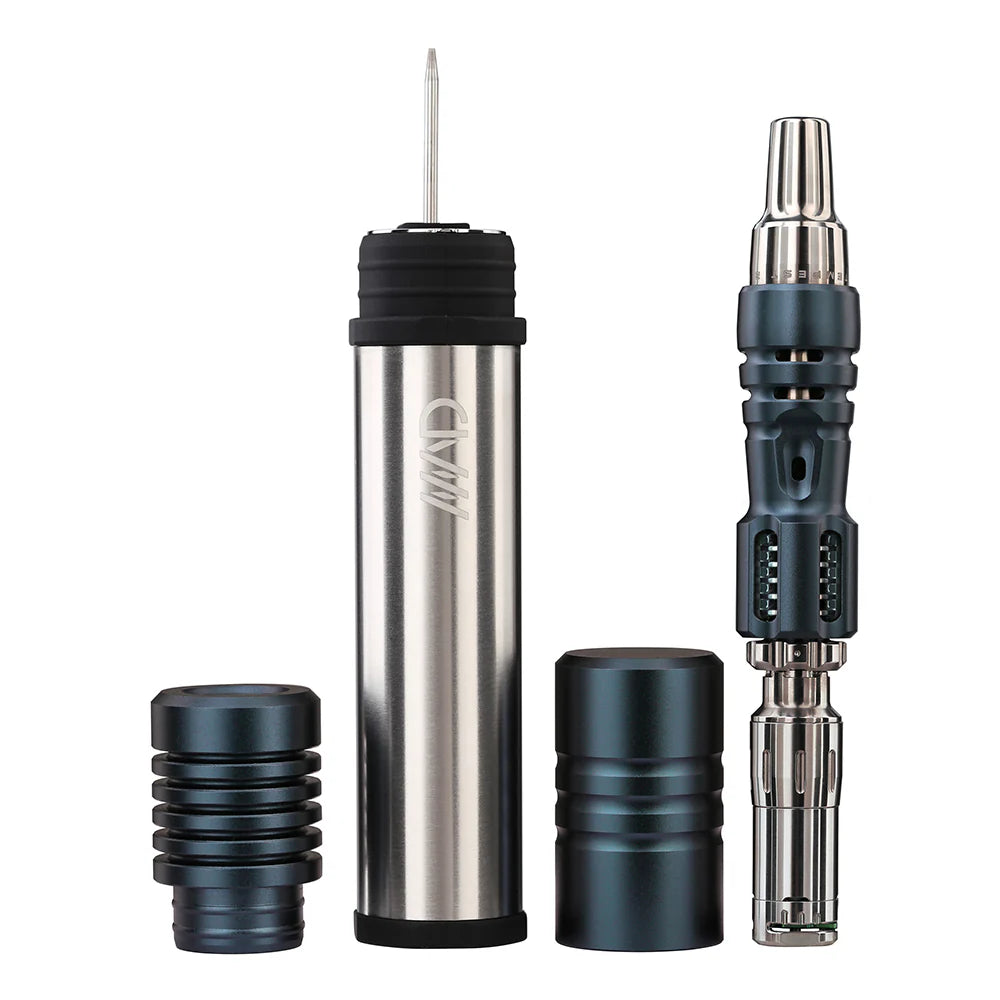 Case for the Tempest V1 and V2, featuring optional herb storage (approximately 1–1.5 g of ground material), a removable Debowler, and a C-tool. The case lid includes a magnet and a socket tool for the Tempest cap on the inside.