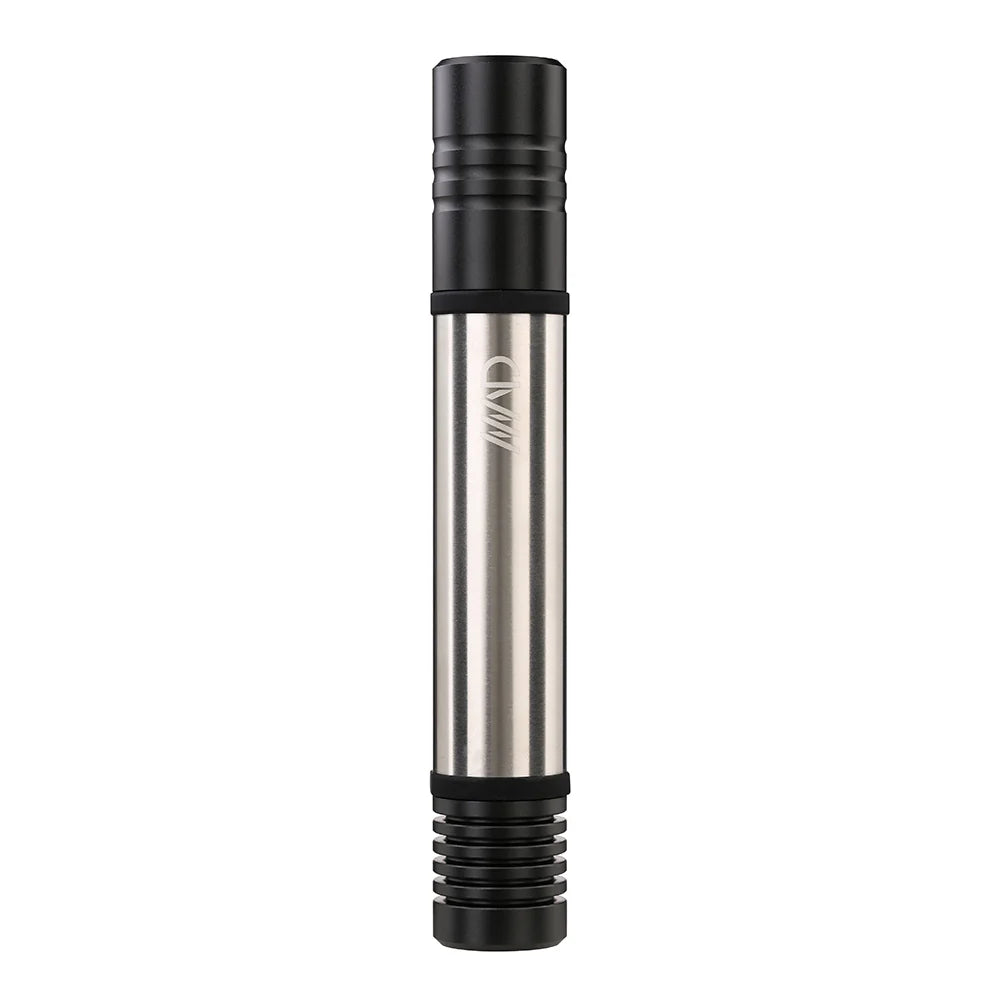 163mm x 25mm, 51gr. Aluminium cap and pot, stainless steel case with silicone lining.