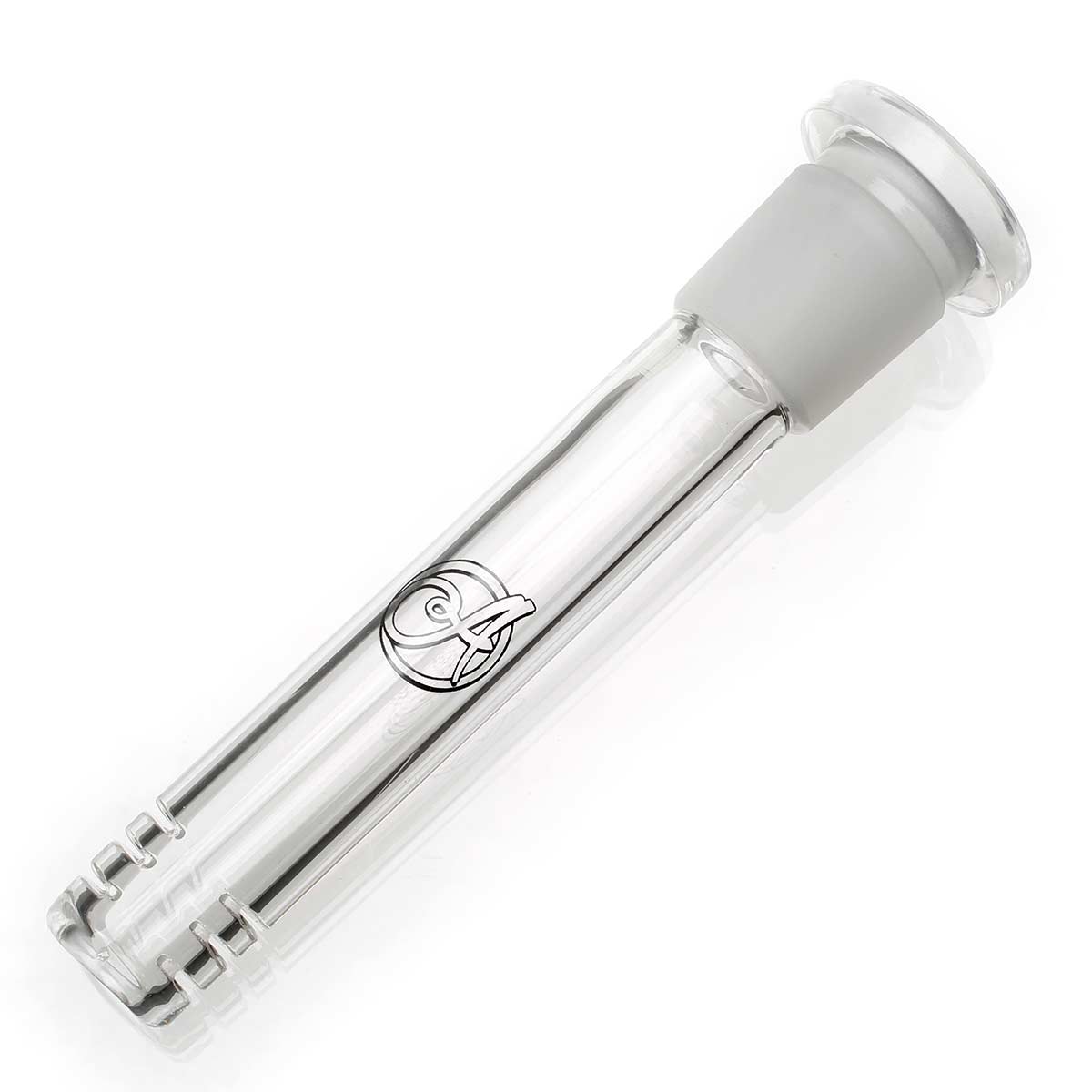 22mm male to 18mm female glass downstem with diffuser slits to suit the Arcadia Mini Mace.