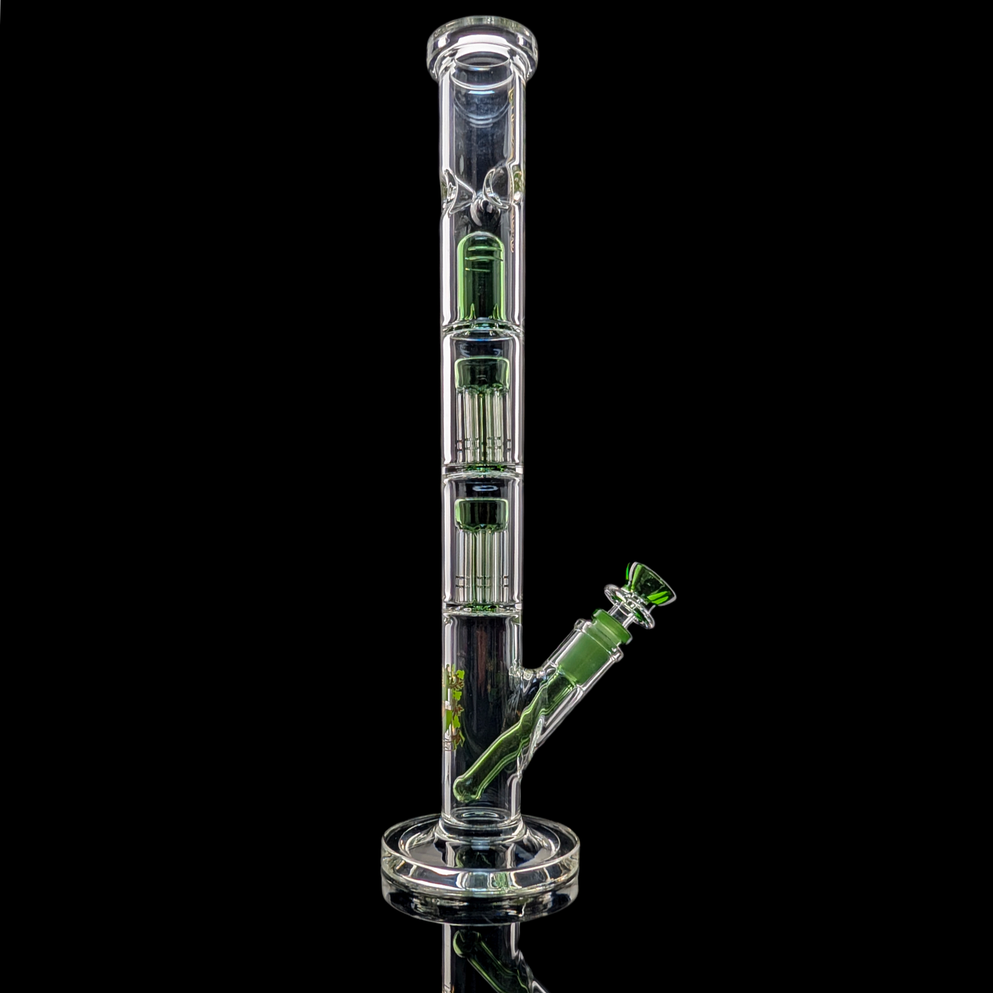 35cm straight tube with 2 x 6 arm tree percs, ice pinch and diffuser stem.  18mm - 14mm 10cm reducer stem and 14mm male bowl.