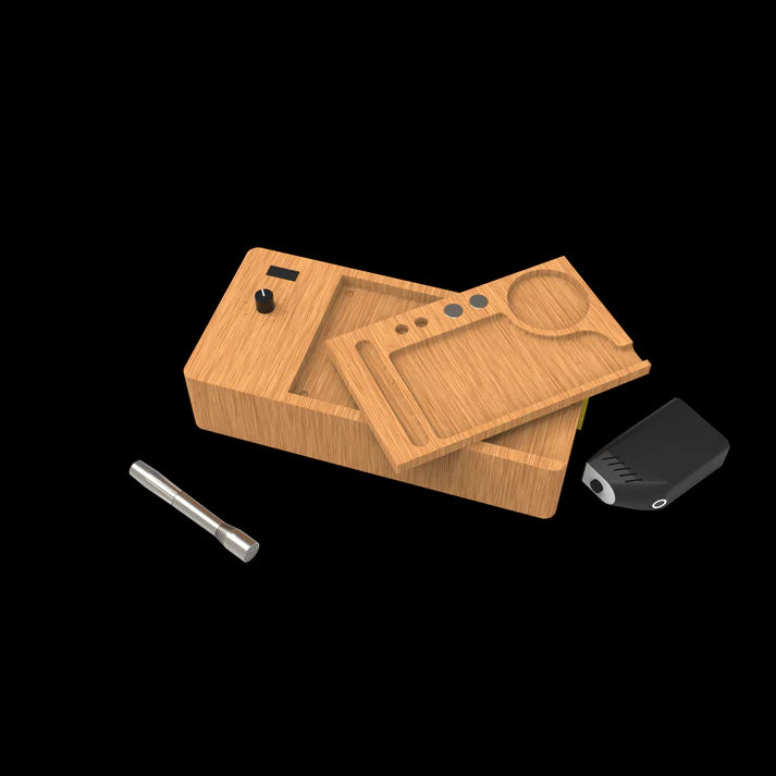 The Inductor is Camouflet's unique and incredibly powerful desktop induction heater for battery-free devices and accessories. Built around a tabletop power unit that incorporates a removable rolling tray, adjustment dial, and voltage meter display. A modular head is used to heat your device and attaches to the power unit with a cable. The Inductor head unit uses Camouflet's patent-pending F-Core technology, allowing induction heating without placing the device inside a coil. We call this the Flame-less Lighter Head. The Inductor has a wide adjustable power range allowing for heat-up times ranging from less than 1 second to 15 seconds depending on the device being heated. The unit ships with our Flame-less Lighter Head and we plan to produce a variety of other head configurations, ideal for heating in different situations. These heads are all compatible with the tabletop power unit. Check out the Inductor heat-up videos in the image section and on the Camouflet youtube channel! The Inductor is Made in the USA and designed to be the perfect pairing to the Convector. *Connect the cable to the Bamboo power supply and Inductor Lighter Head while the power switch is off.