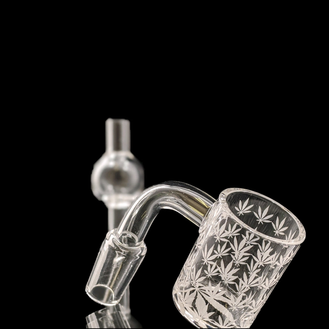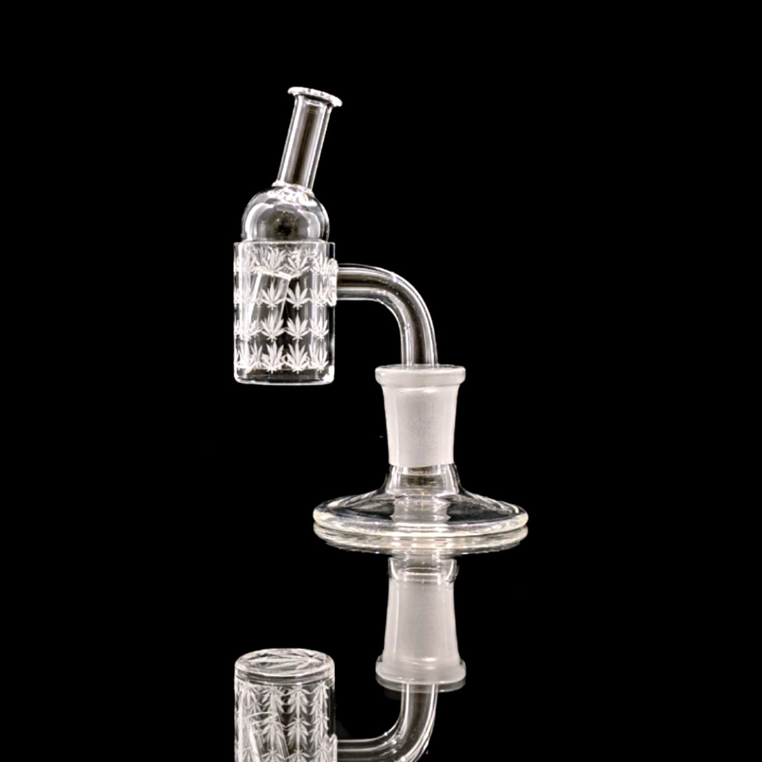 Etched Cannabis Leaf Quartz Banger and Spinning Carb Cap Kit