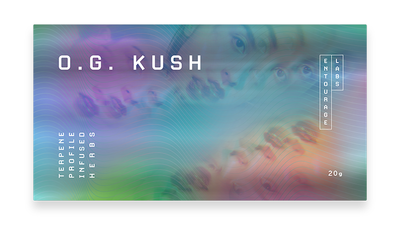 Entourage Labs have developed a premium, fluffy, stem free herbal blend/tobacco substitute of Marshmallow, Cornflower & Blue Lotus infused with precision replications of the unique terpene signatures of individual strains. Supplied in a resealable 20g pouch and currently available in Super Lemon Haze & OG Kush profiles; Gorilla Glue # 4 coming soon.
