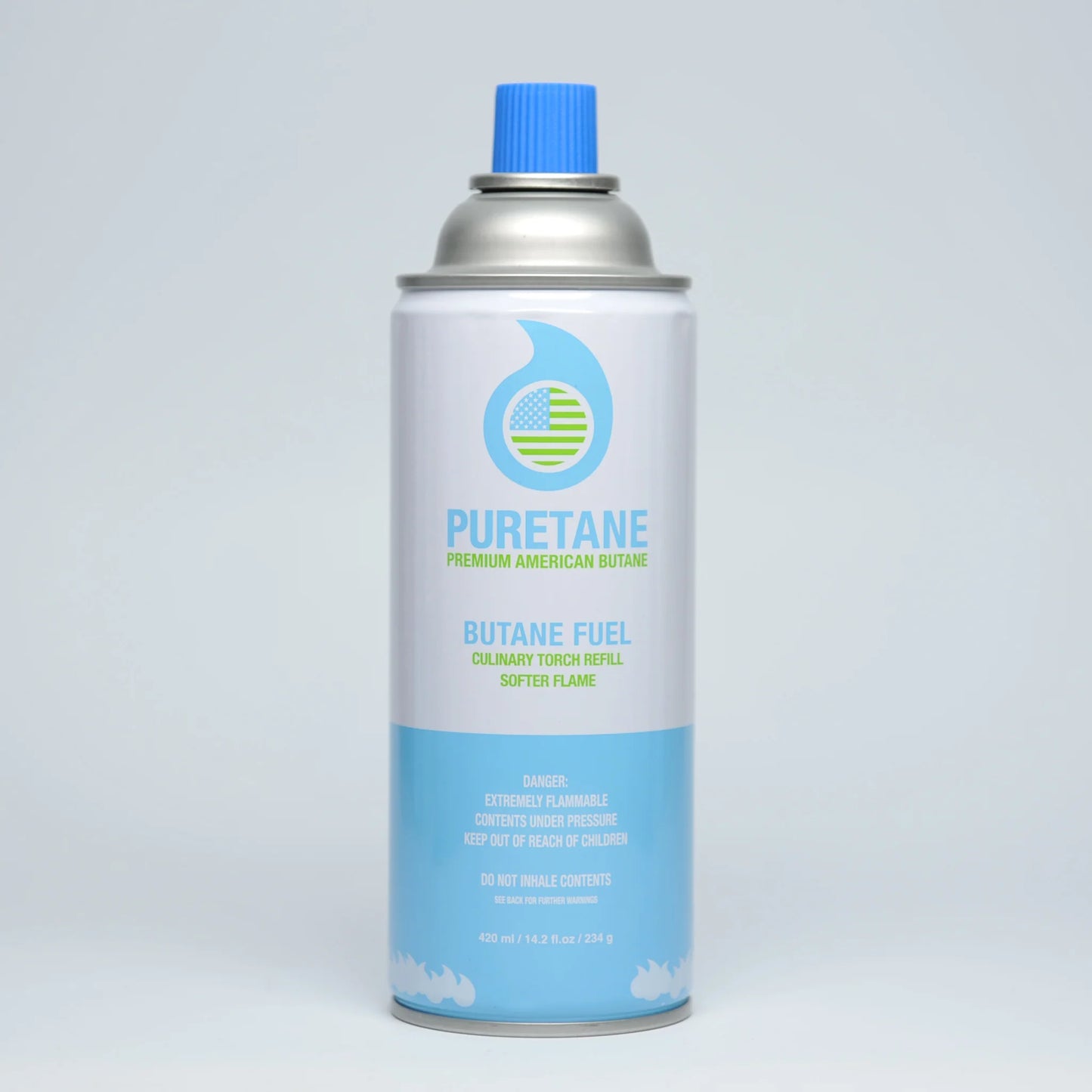 American made premium American n-Butane. 99.9998% n-Butane, 0.0002 Isobutane. Zero propane. Food grade canister. BPA-free liner. Zero toxic lubricants.