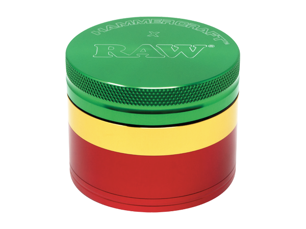 RAW has partnered with Hammercraft to bring you these high-quality aluminum 4 piece grinders available in three RAWkin’ colors: red, black, and rasta.