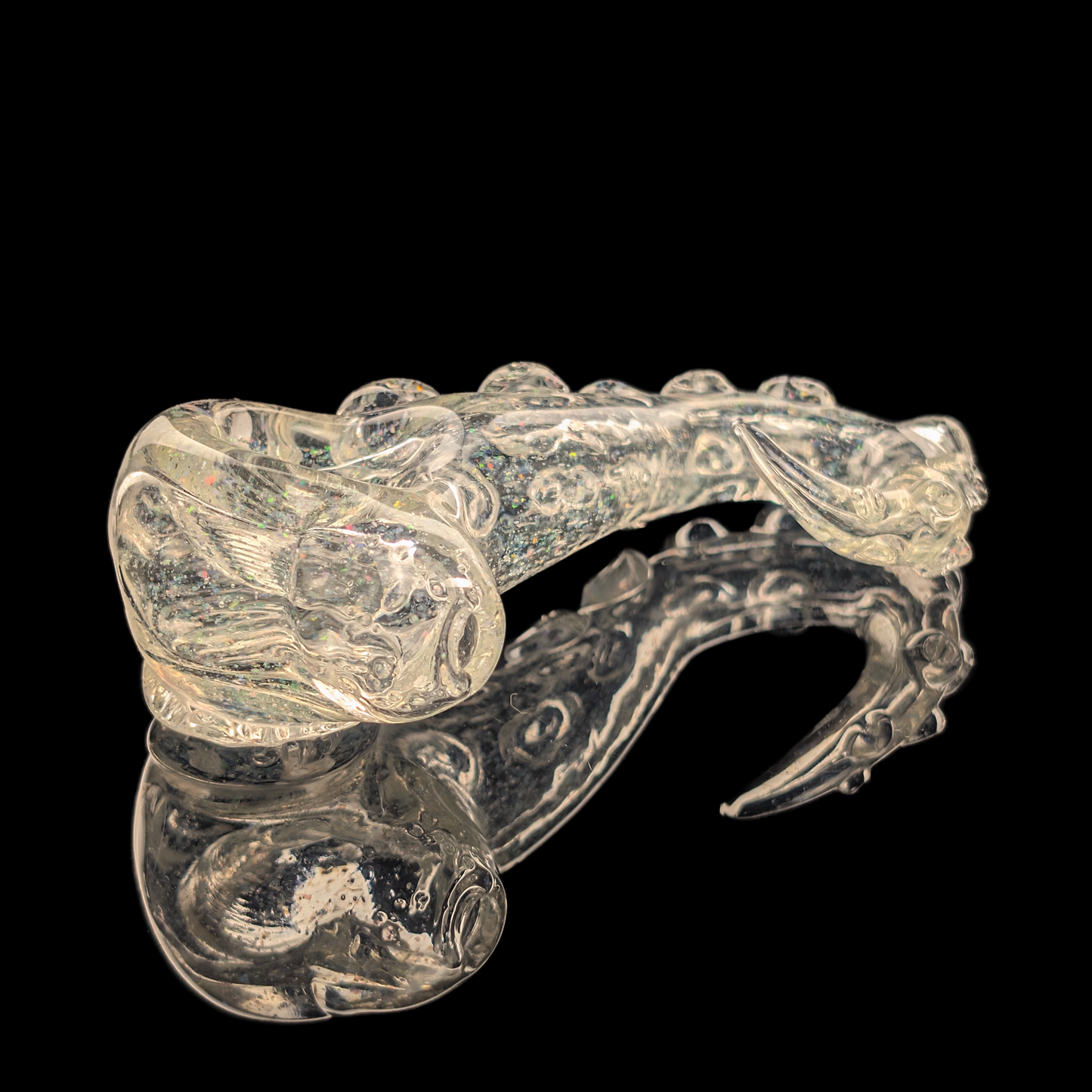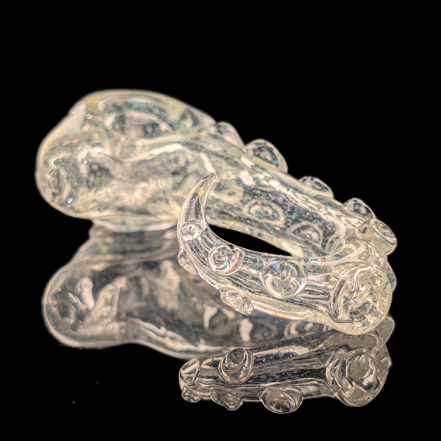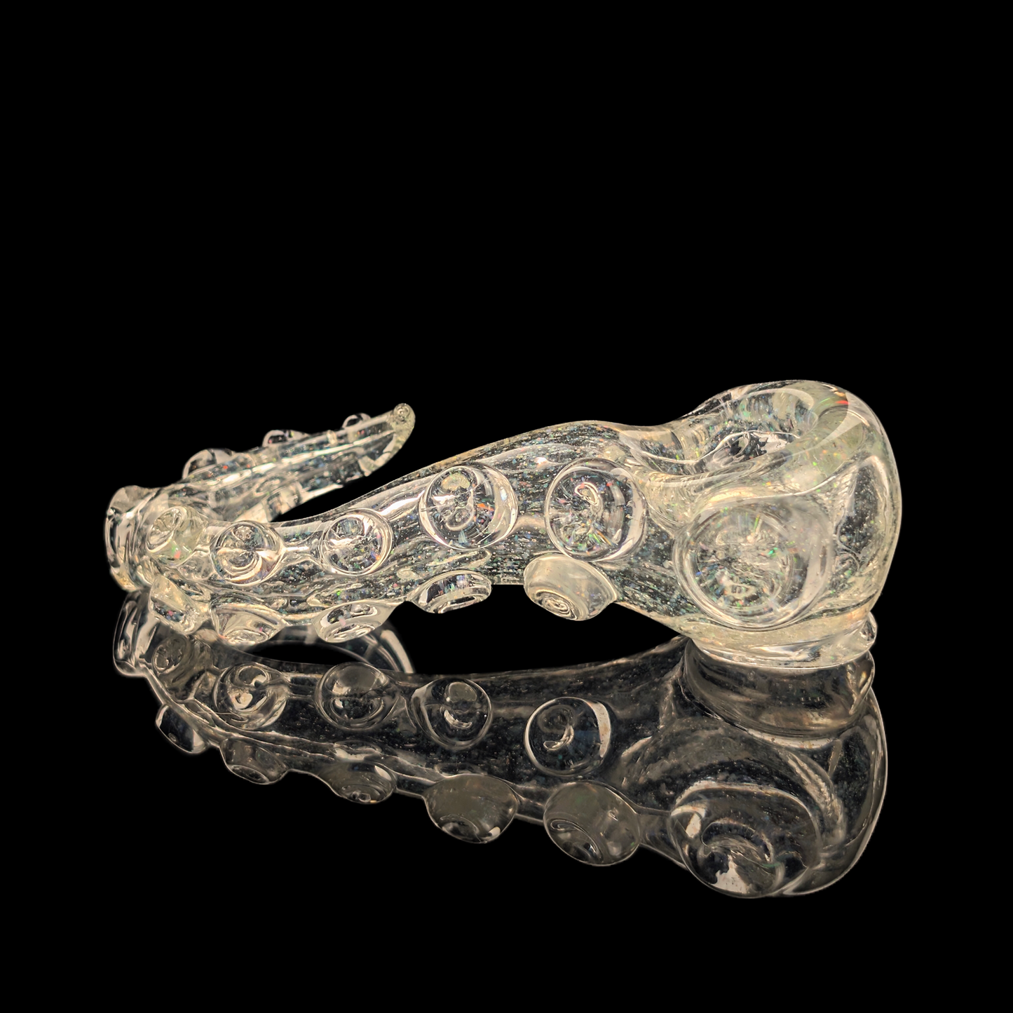 UV reactive Tentacle spoon pipe with crushed opal by Wicked Glass Santa Cruz.